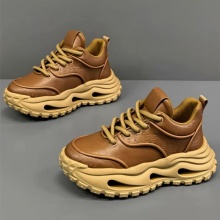 男鞋新款春季潮流百搭青少年休闲皮面跑步运动厚底耐磨男士老爹鞋