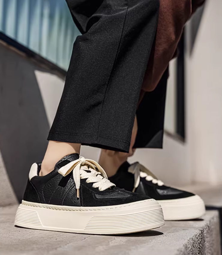 男鞋2025新款秋季运动真皮休闲鞋高级感软底防滑耐磨运动鞋