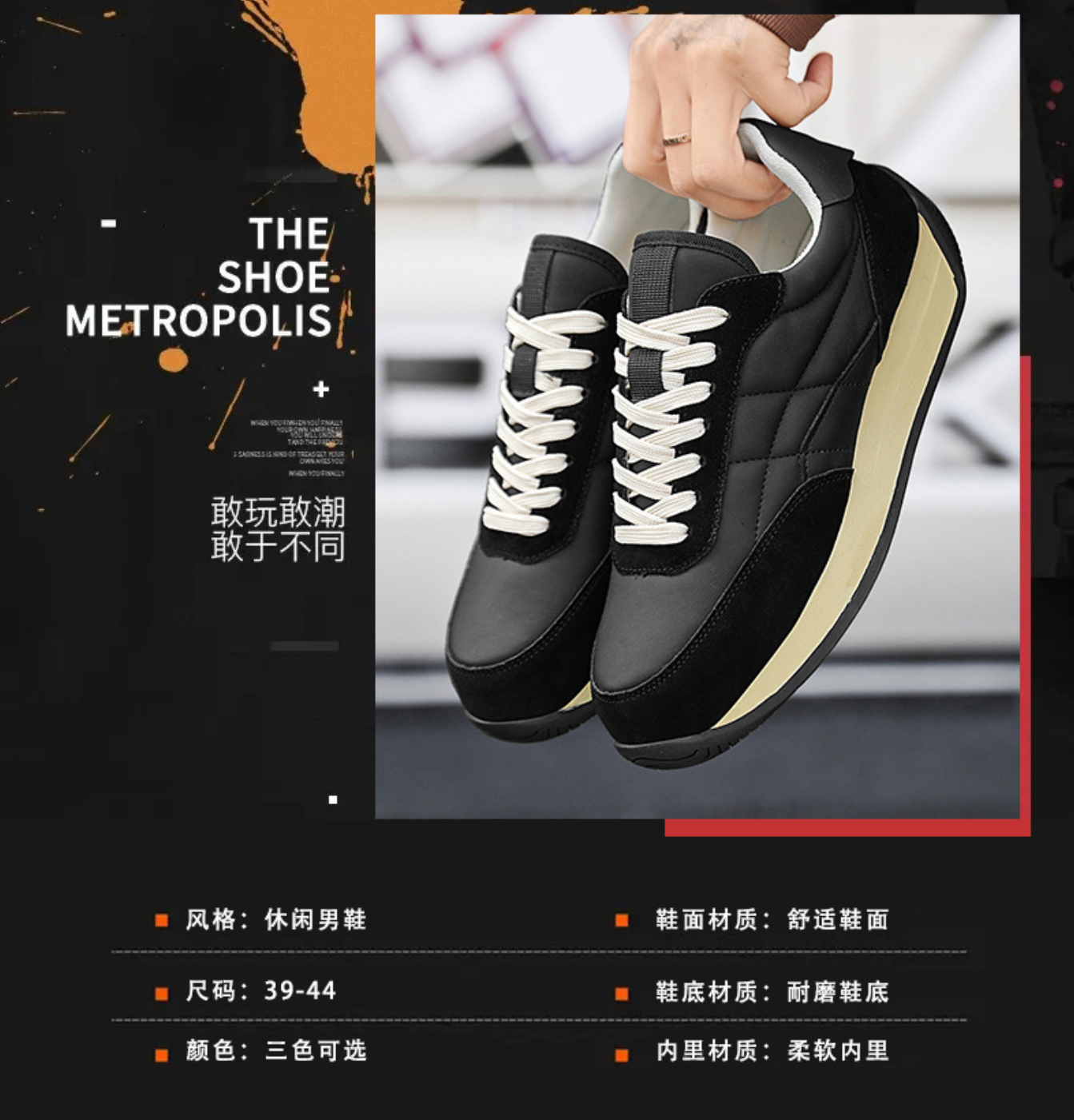 产品名称:男鞋2024春季新款潮流百搭学生跑步运动厚底男士休闲爆款潮鞋