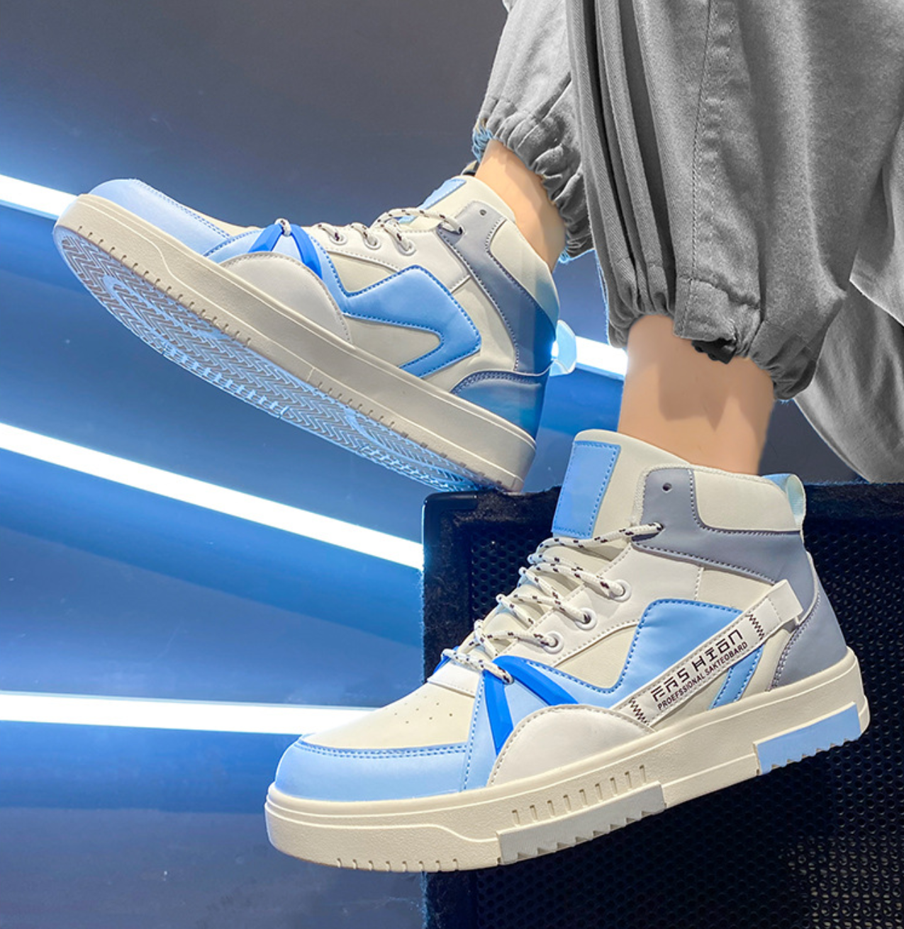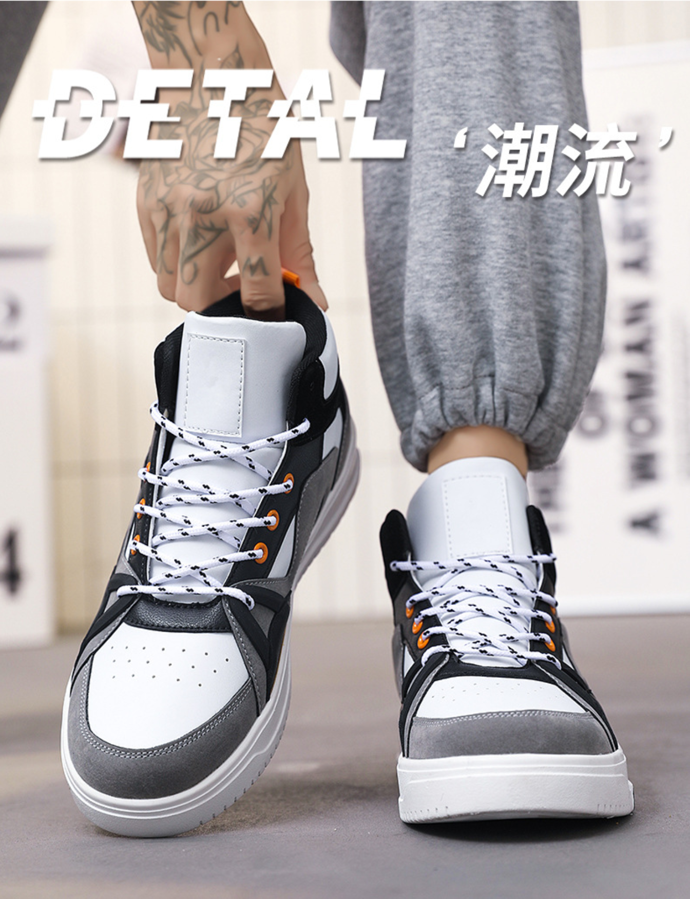 产品名称:男鞋2024秋季新款潮流百搭休闲运动厚底男士高帮国潮小众设计运动鞋