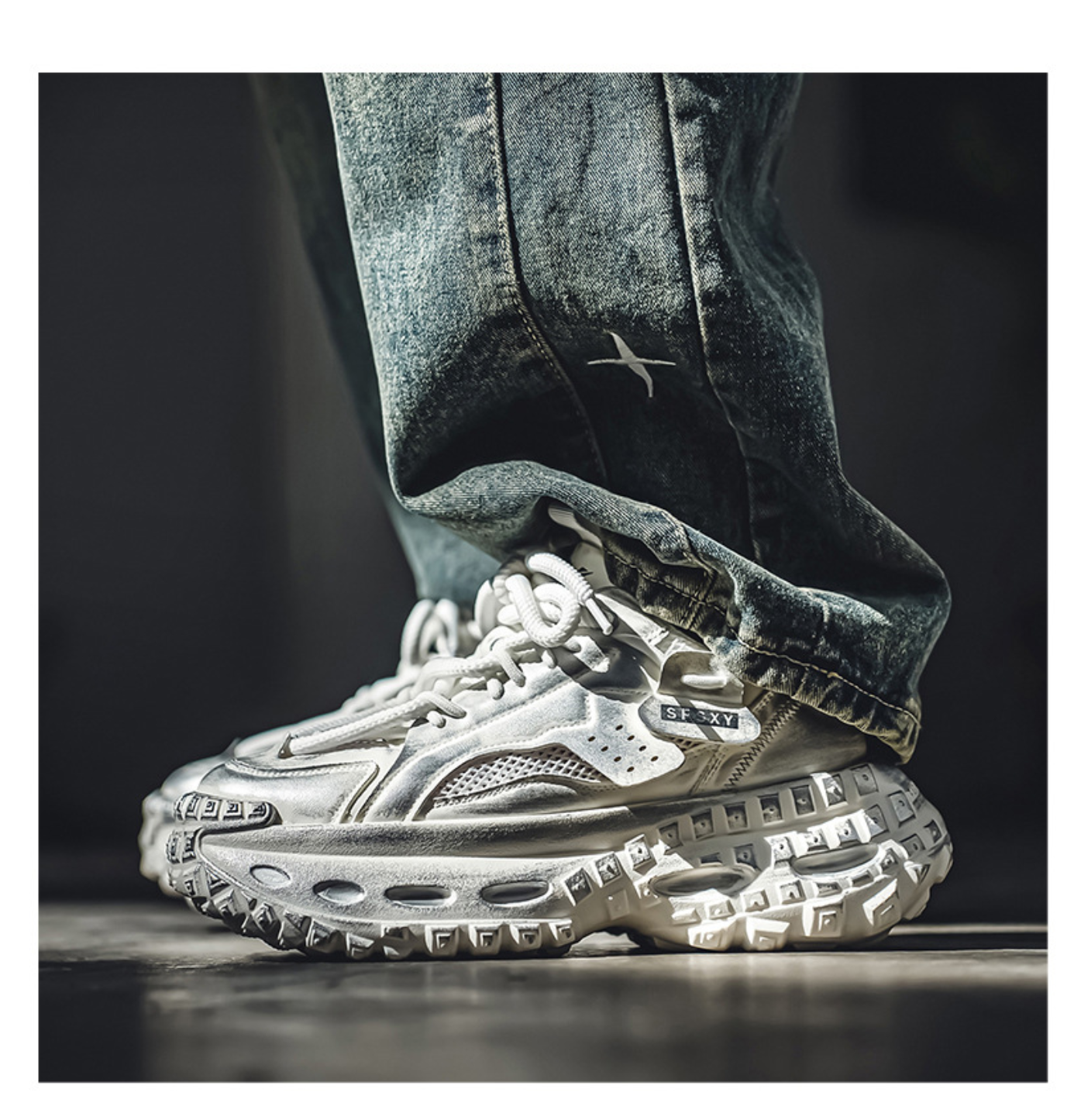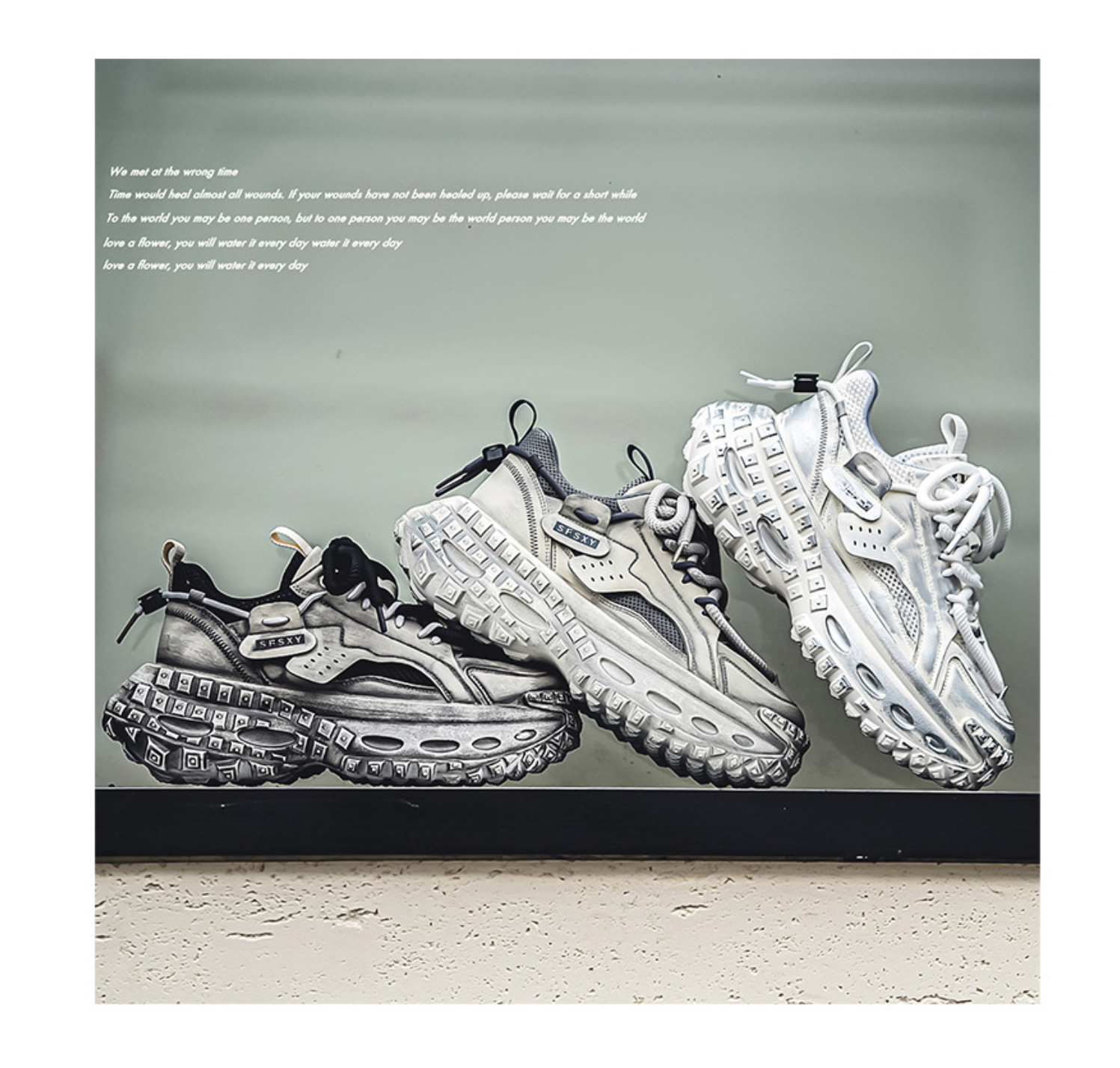 产品名称:老爹男鞋2025新款夏季百搭复古做旧男士潮流厚底软底运动潮鞋