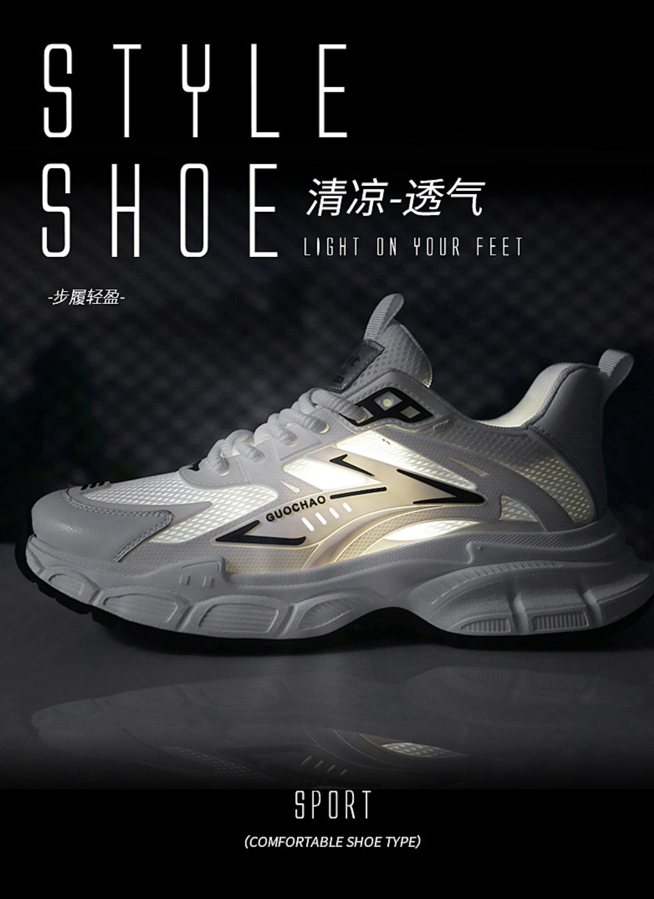 产品名称:男鞋2025夏季新款青春少年感休闲百搭厚底老爹鞋网面透气运动潮鞋