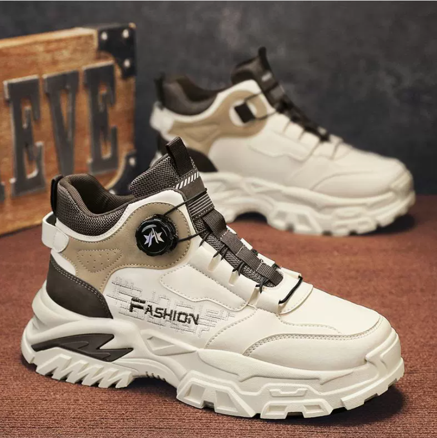 高帮男鞋2025新款冬季休闲百搭魔术贴运动鞋增高皮面小白工装潮鞋