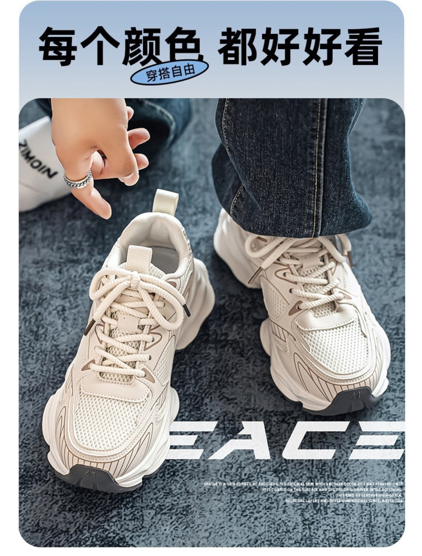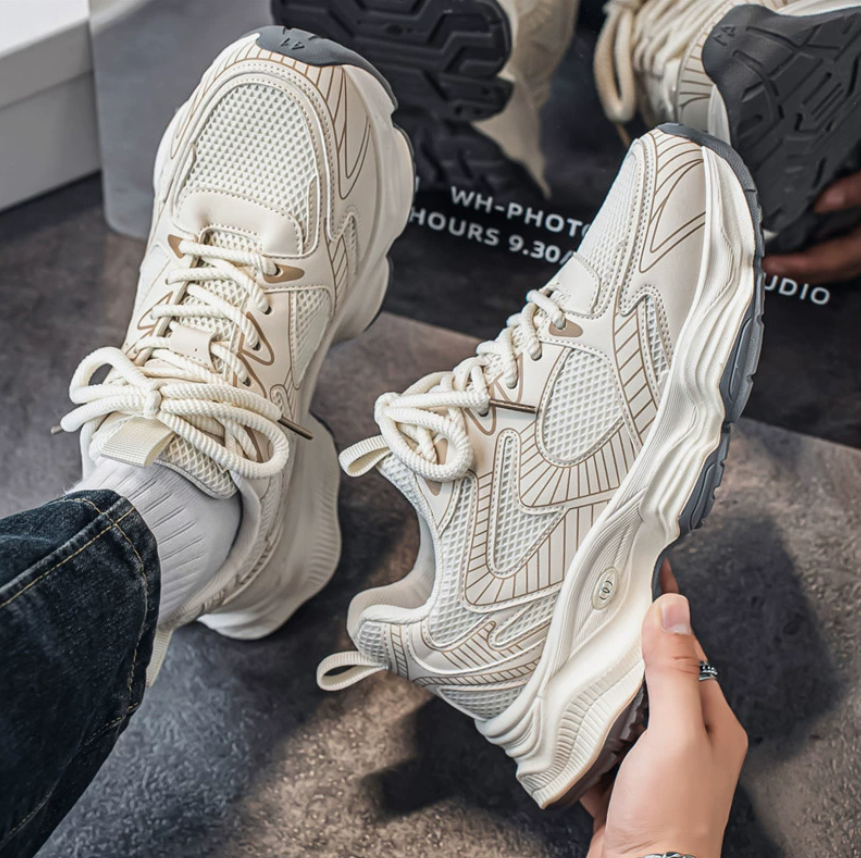 产品名称:男鞋2025夏季新款个性韩版厚底老爹鞋青少年网面透气防臭运动潮鞋