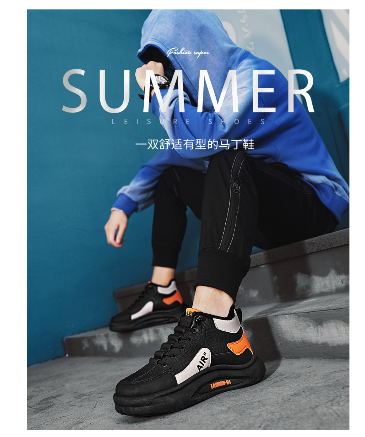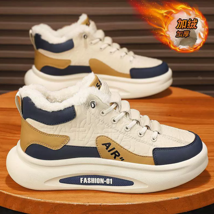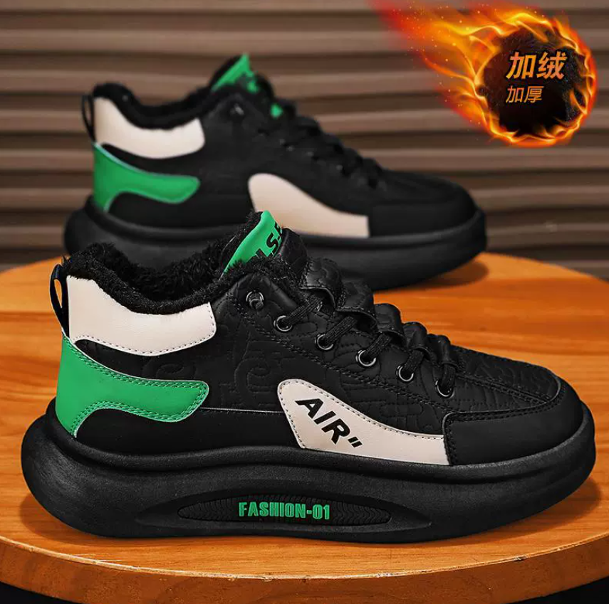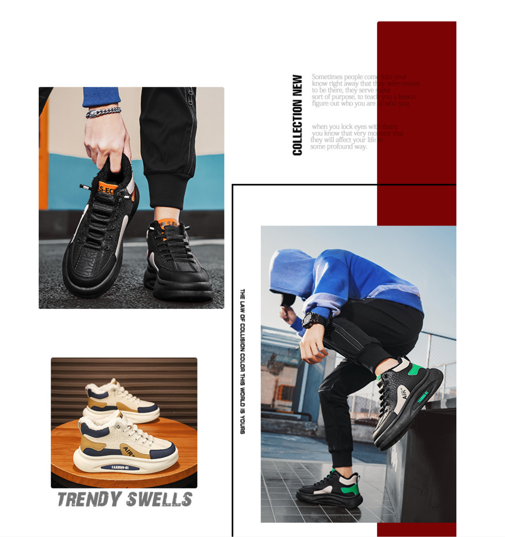 高帮男鞋2025新款冬季休闲百搭魔术贴运动鞋增高皮面小白工装潮鞋