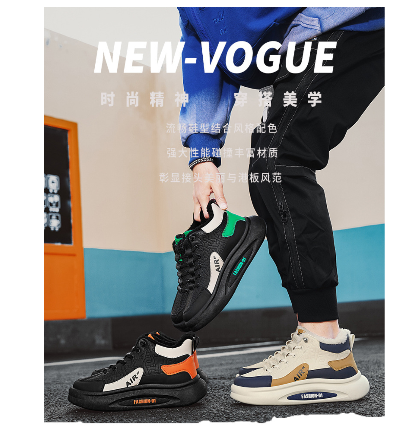 产品名称:男鞋2024冬季新款男士休闲高帮防水一脚蹬工作加绒加厚保暖棉鞋潮