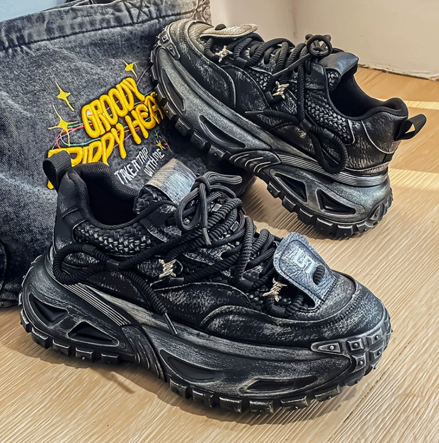 欧洲站男鞋冬季潮牌高级感百搭运动休闲溶解鞋跑步厚底增高老爹鞋