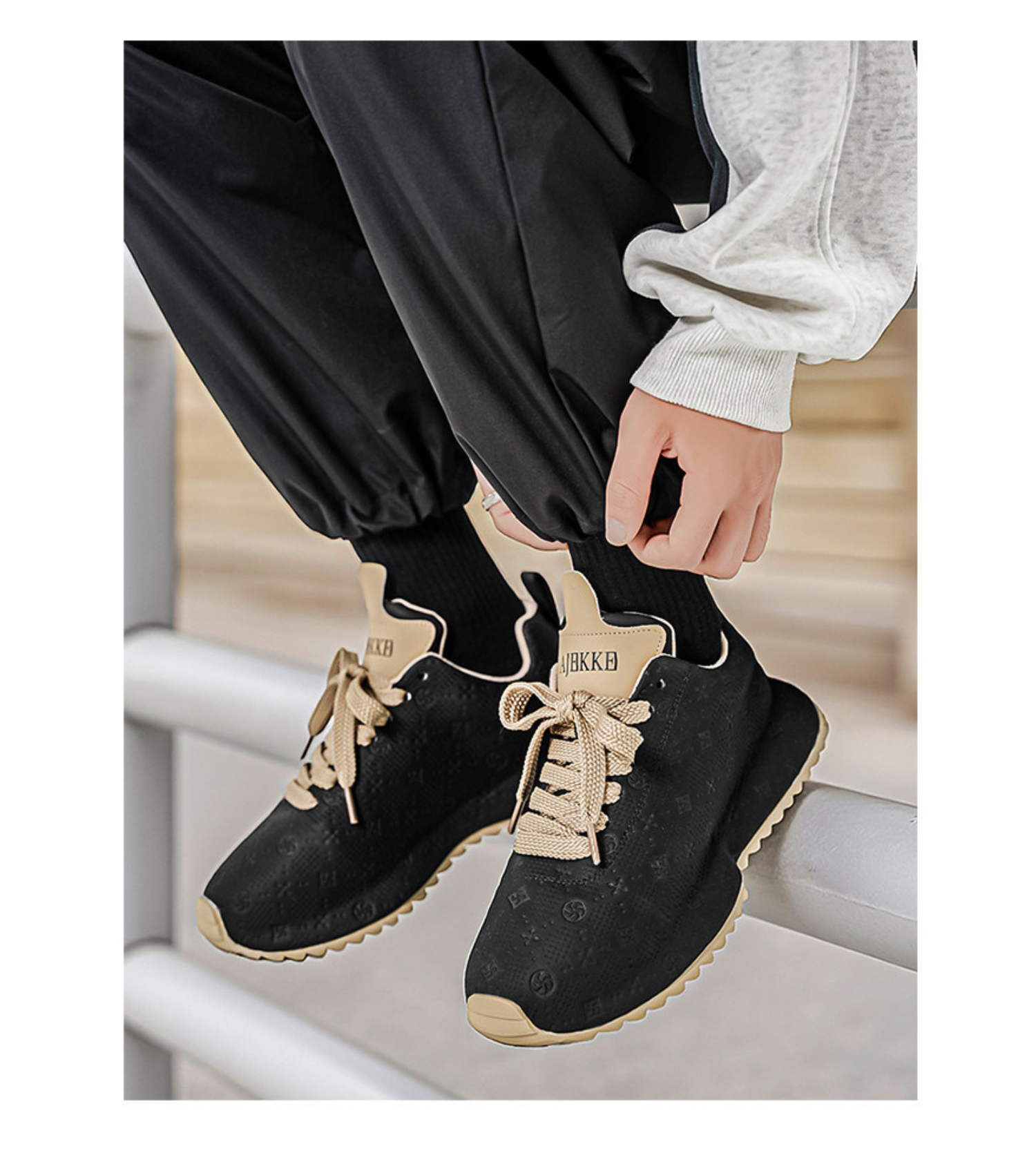 欧洲站男鞋冬季潮流百搭休闲青少年跑步运动厚底内增高黑色老爹鞋