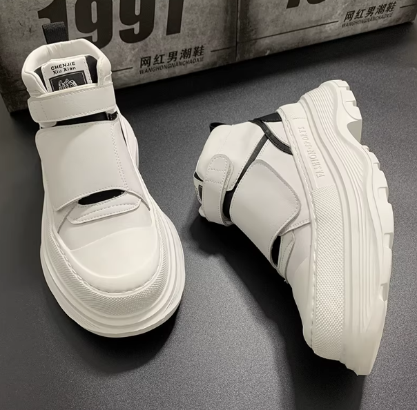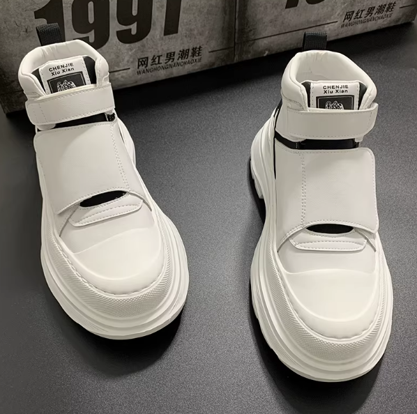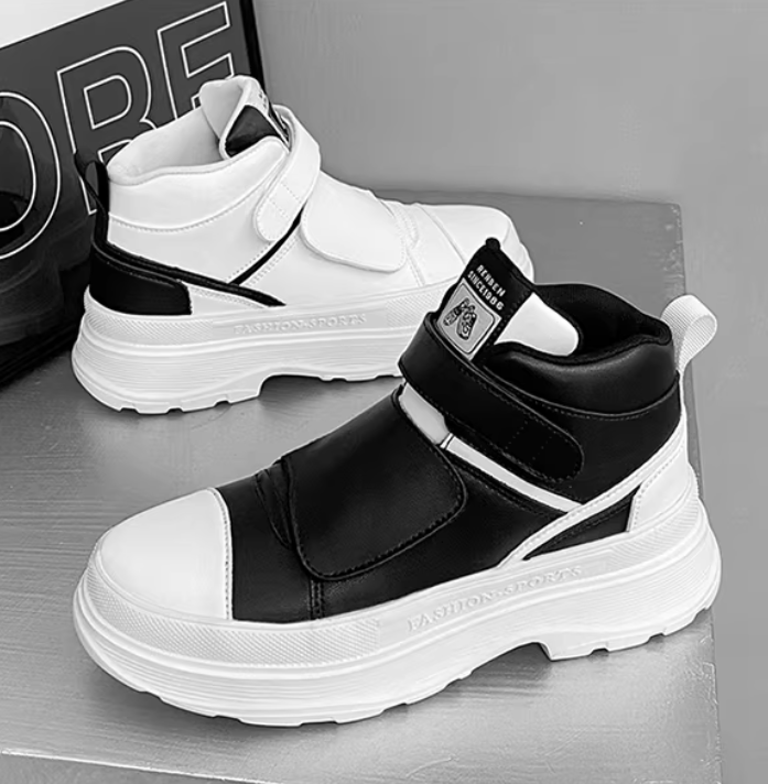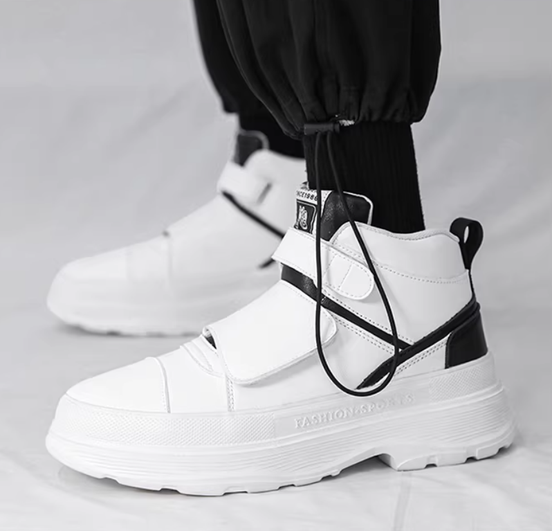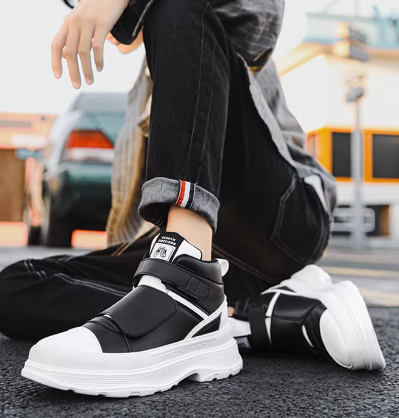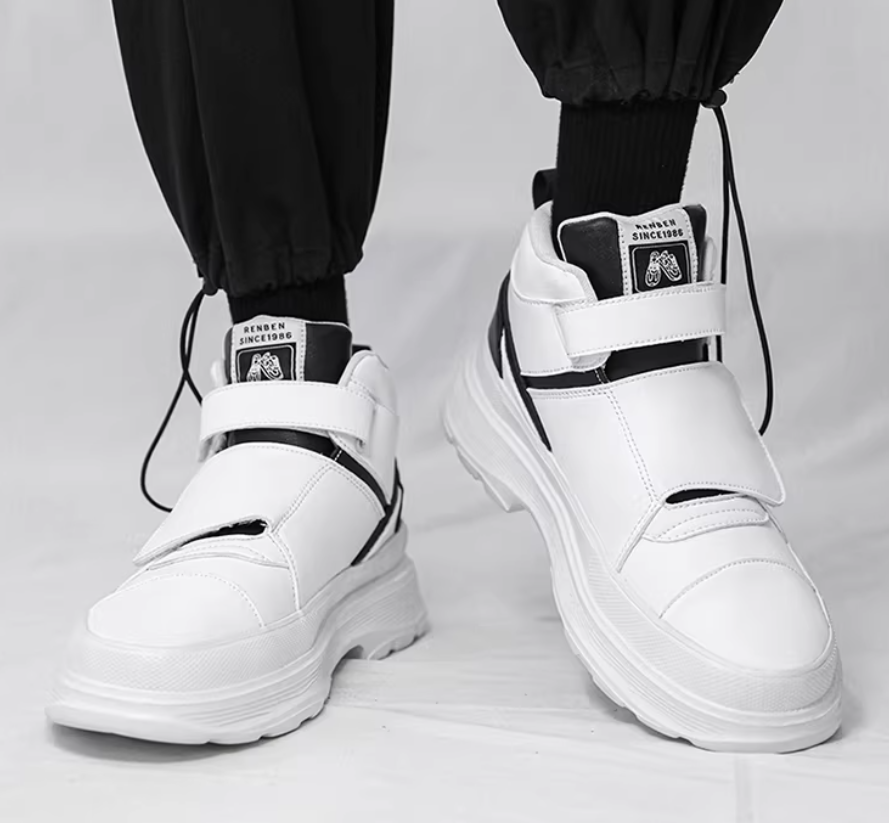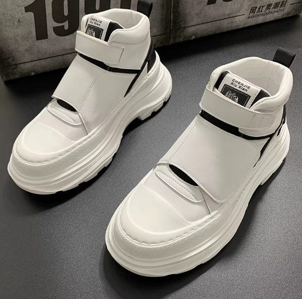 产品名称:高帮男鞋2025新款冬季休闲百搭魔术贴运动鞋增高皮面小白工装潮鞋
